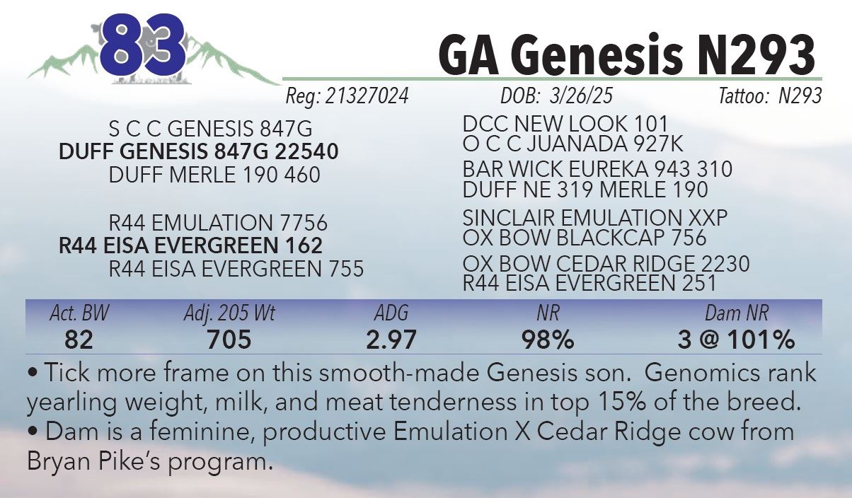 • Dam is a feminine, productive Emulation X Cedar Ridge cow from