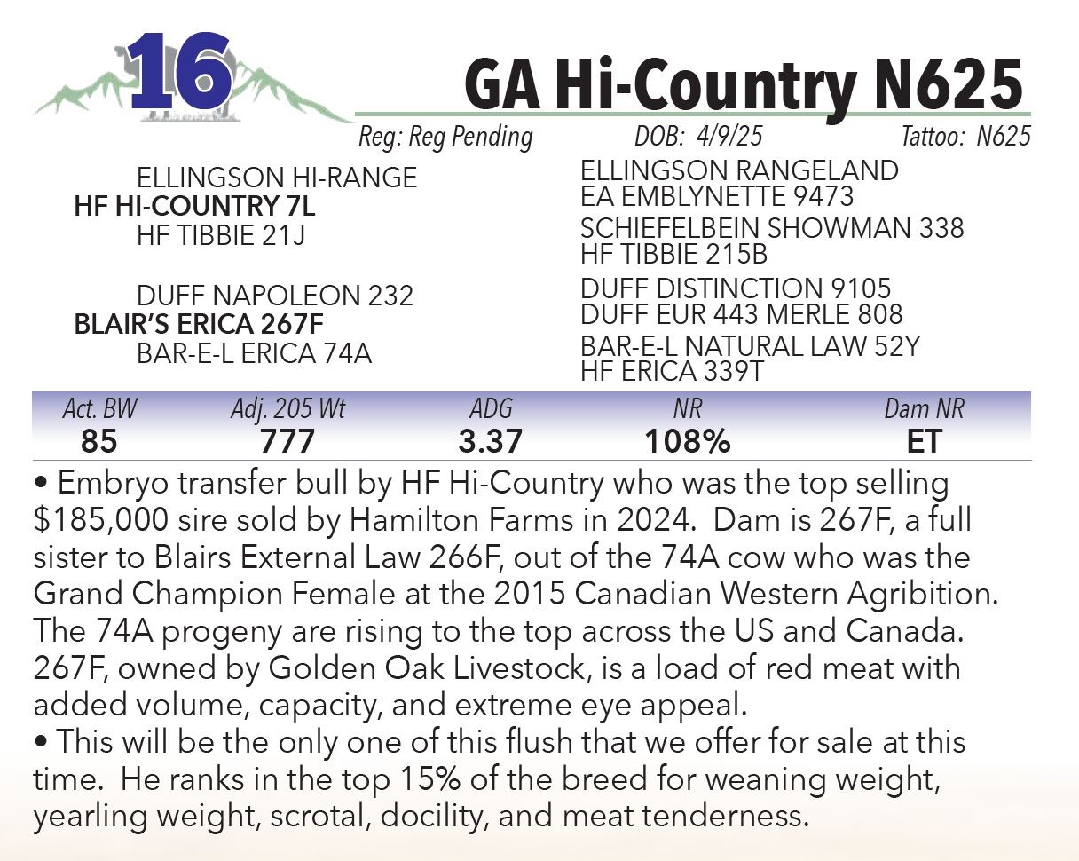 • Embryo transfer bull by HF Hi-Country who was the top selling
