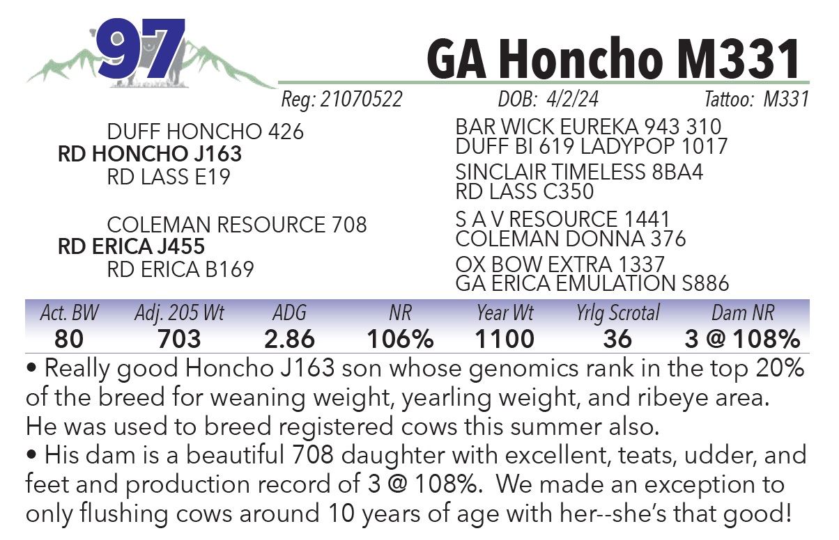 • Really good Honcho J163 son whose genomics rank in the top 20%