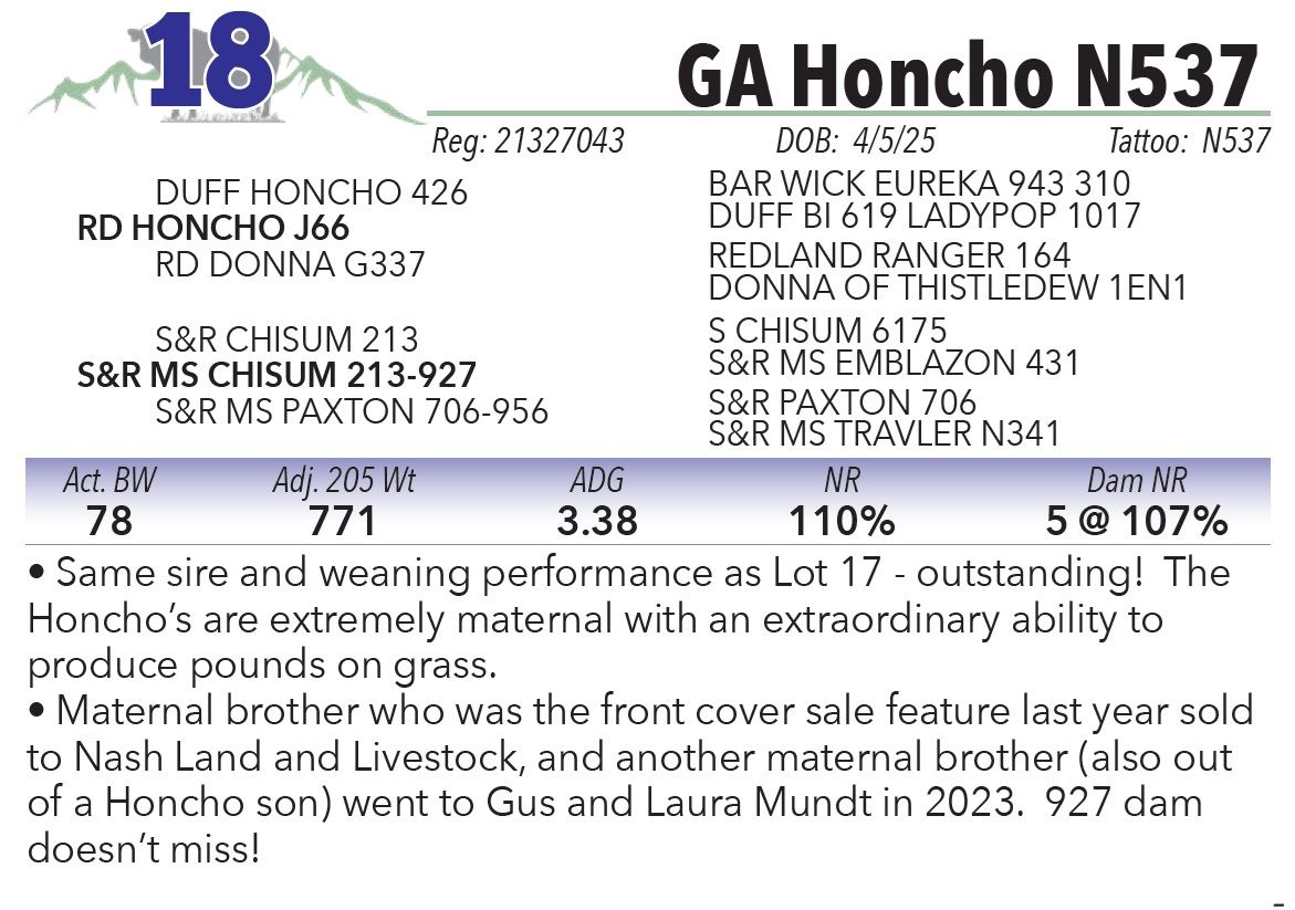 of a Honcho son) went to Gus and Laura Mundt in 2023. 927 dam