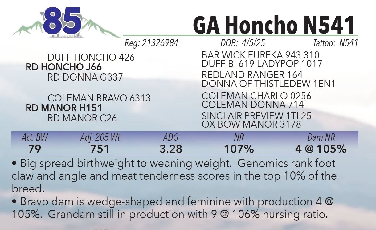 on every bull selling. Buyer receives full