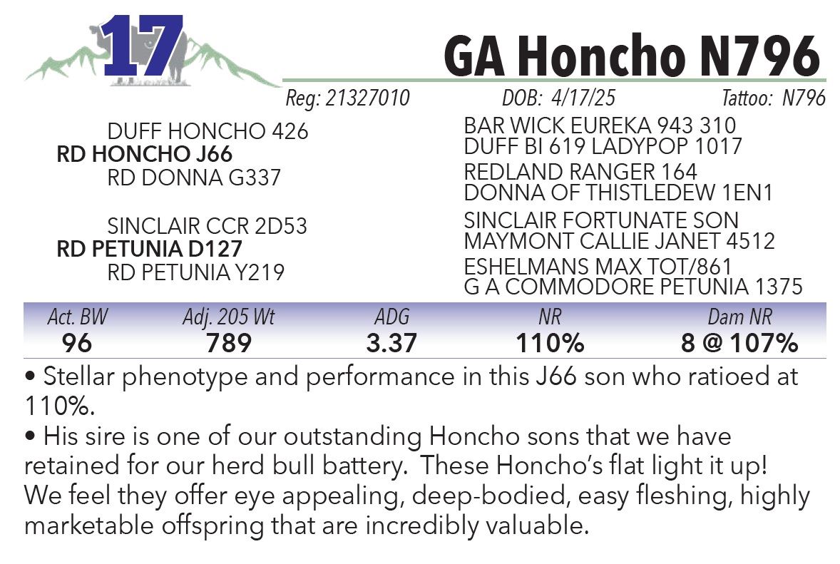 • His sire is one of our outstanding Honcho sons that we have
