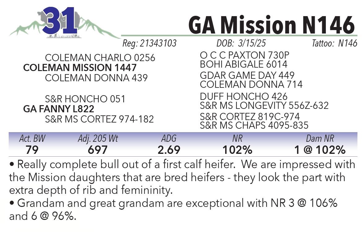 • Really complete bull out of a first calf heifer. We are impressed with