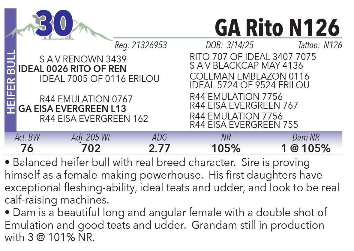 • Balanced heifer bull with real breed character. Sire is proving