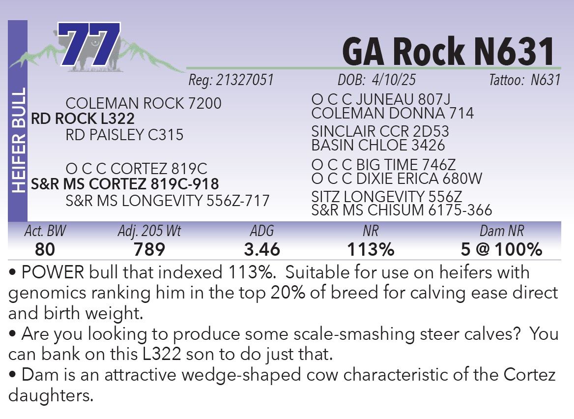 on every bull selling. Buyer receives full