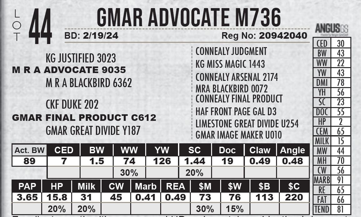 Excellent growth with a very good HP and scrotal combination brings outstanding