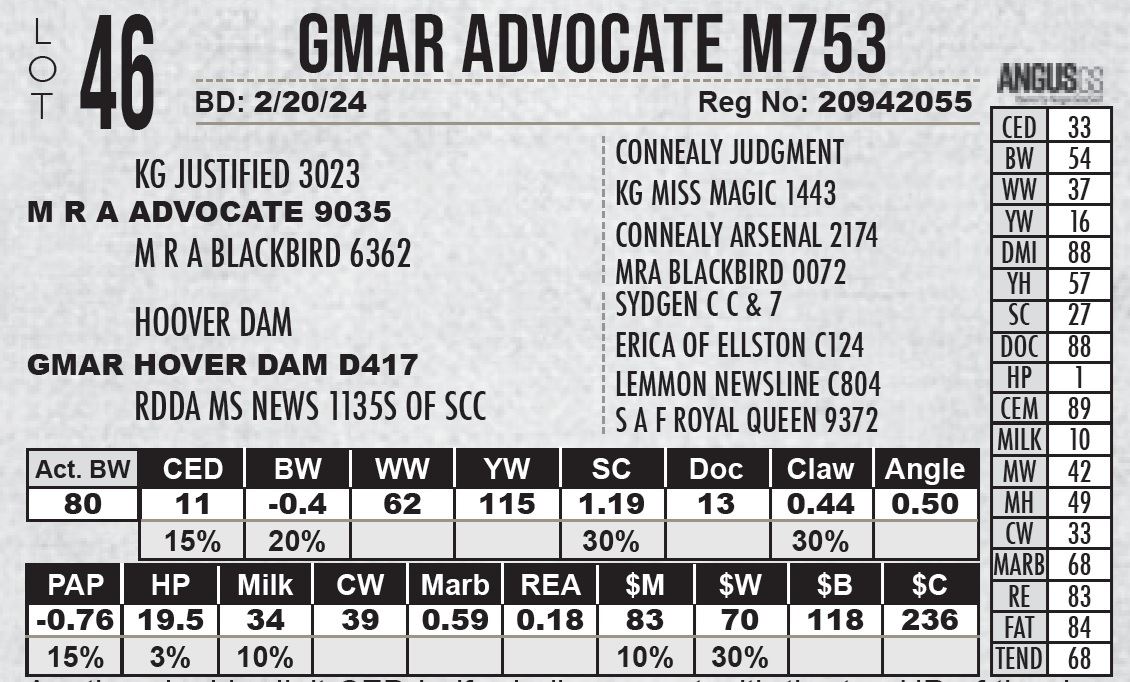 Another double digit CED heifer bull prospect with the top HP of the day,