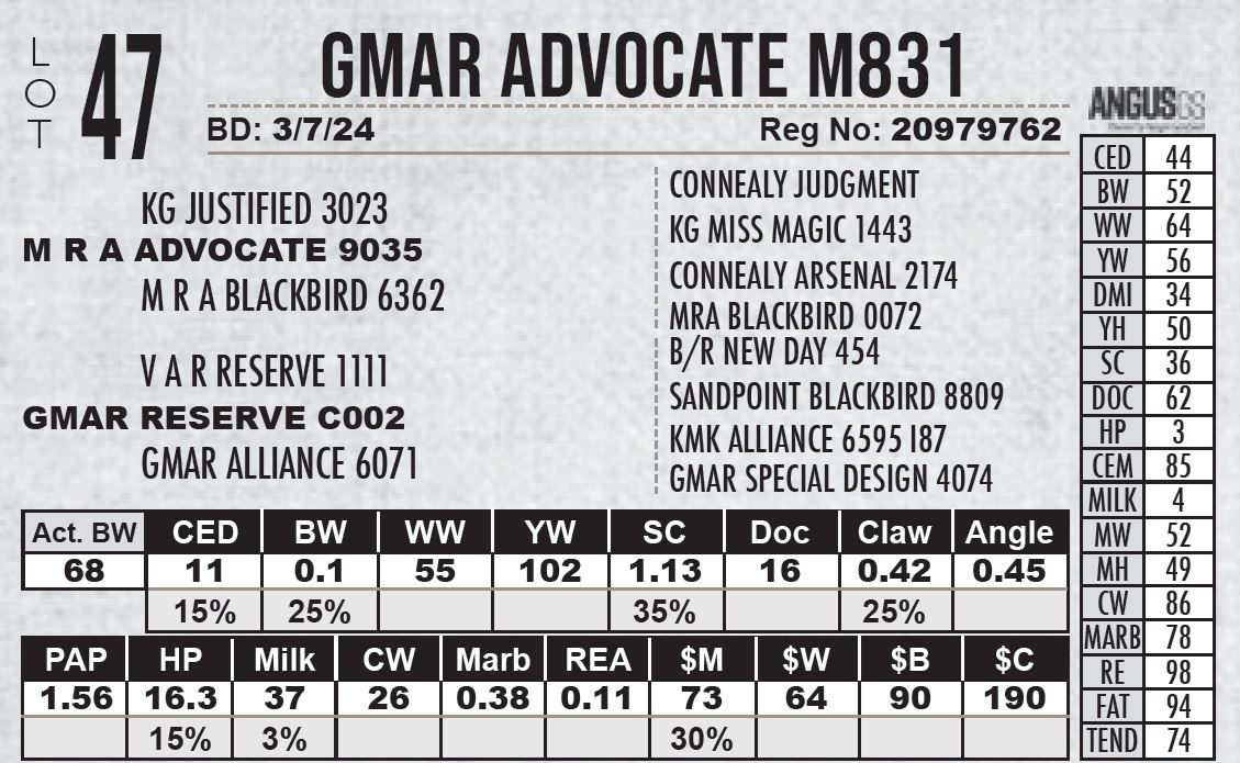 This sale is being conducted under the suggested terms and conditions adopted by the American Angus Association effective March 16, 1992. except for those stated in the terms and