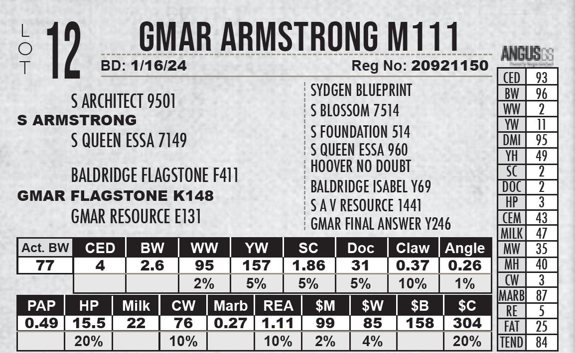 foot scores, excellent PAP, outstanding carcass weight with great dollar