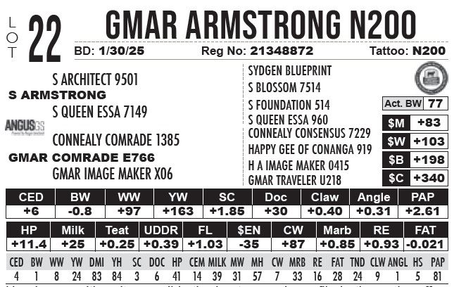 BW with a top 3% growth, outstanding top 5% scrotal, control mature