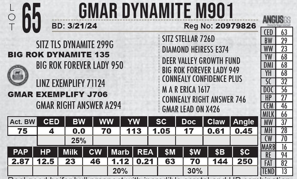 Real good heifer bull prospect with incredible scrotal and HP combination.