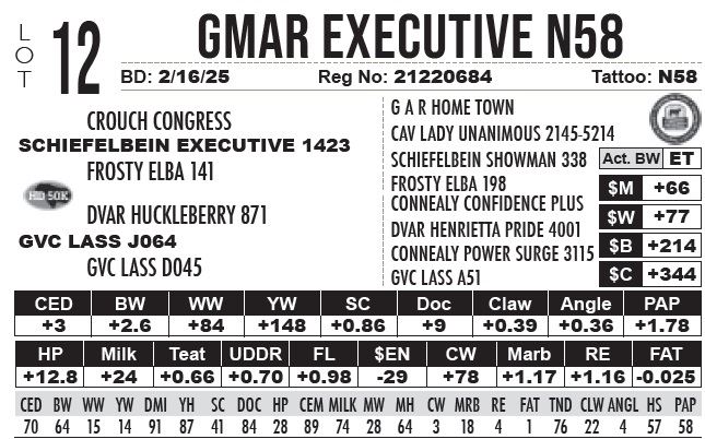 and teat placement that is second to none. Lot 12 has outstanding growth,