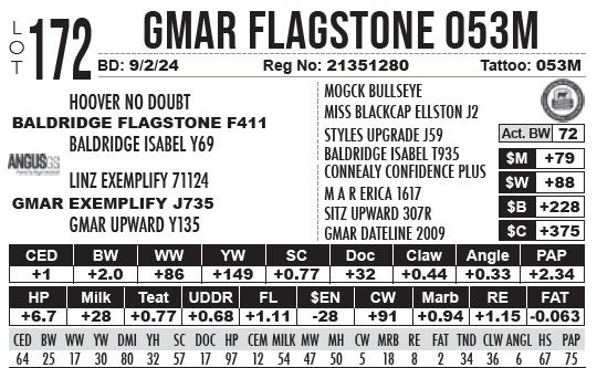 here with a Top 1% $Feedlot Index. His EPDs fulfill his Flagstone x Exemplify