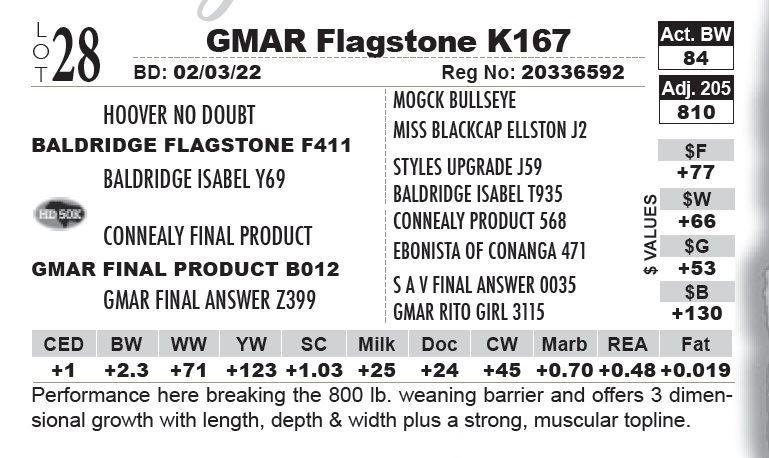 Performance here breaking the 800 lb. weaning barrier and offers 3 dimensional growth with length, depth & width plus a strong, muscular topline.