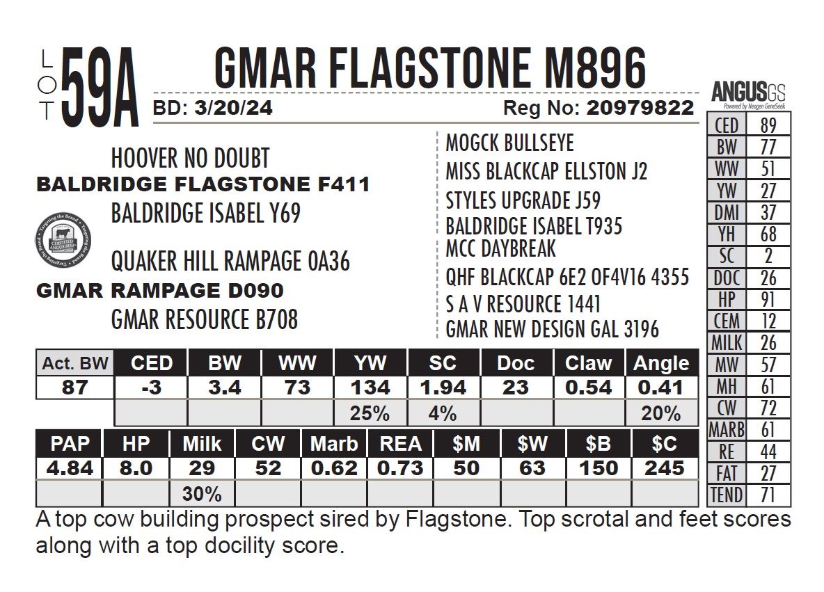 A top cow building prospect sired by Flagstone. Top scrotal and feet scores