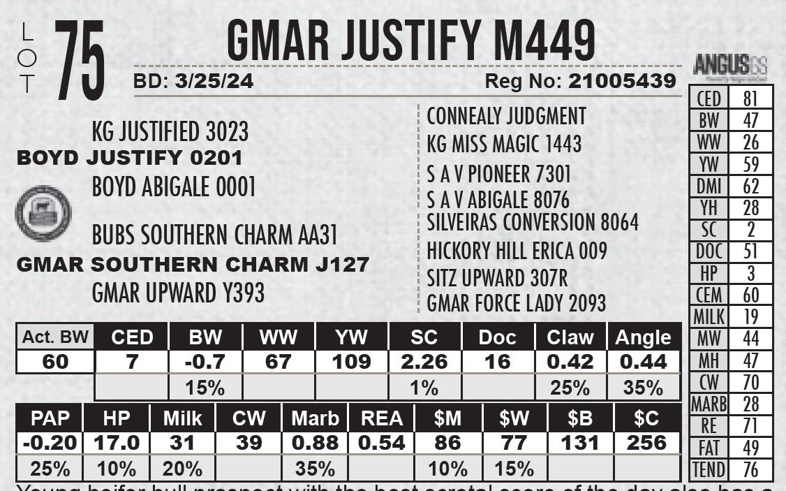 Young heifer bull prospect with the best scrotal score of the day also has a