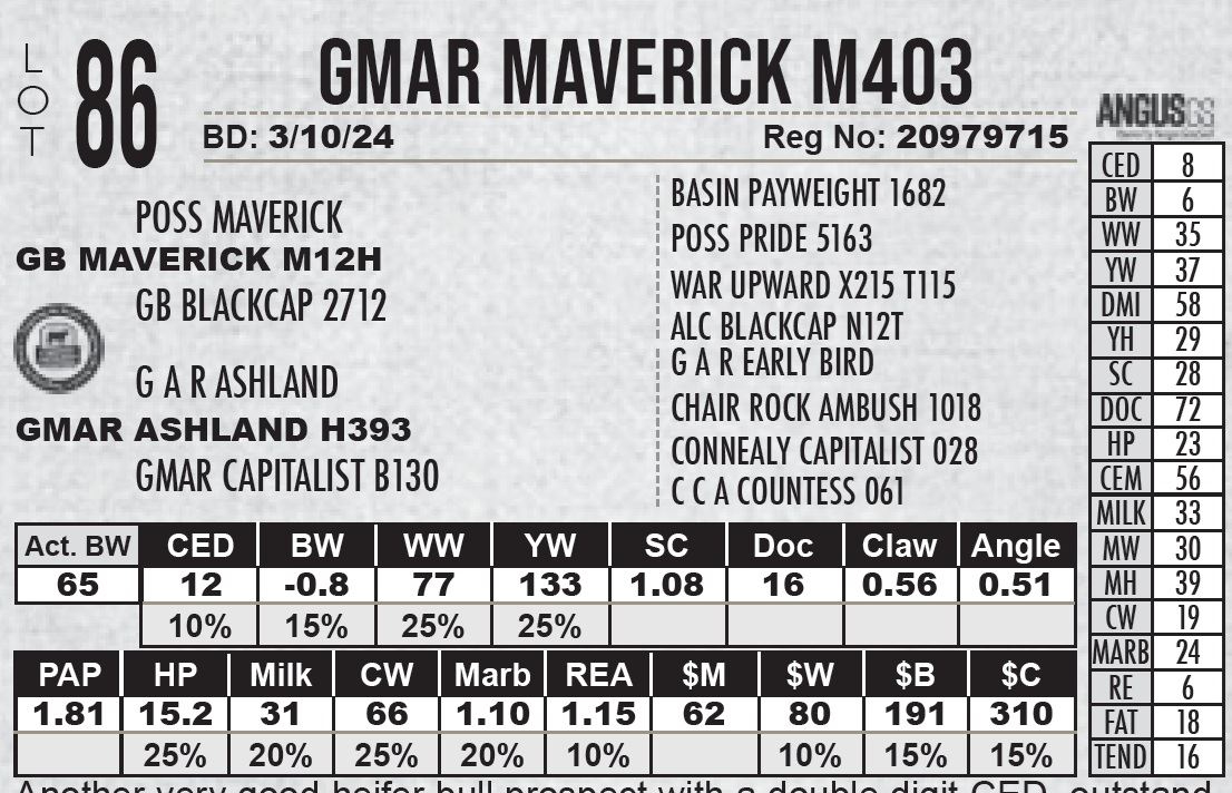 Another very good heifer bull prospect with a double digit CED, outstanding