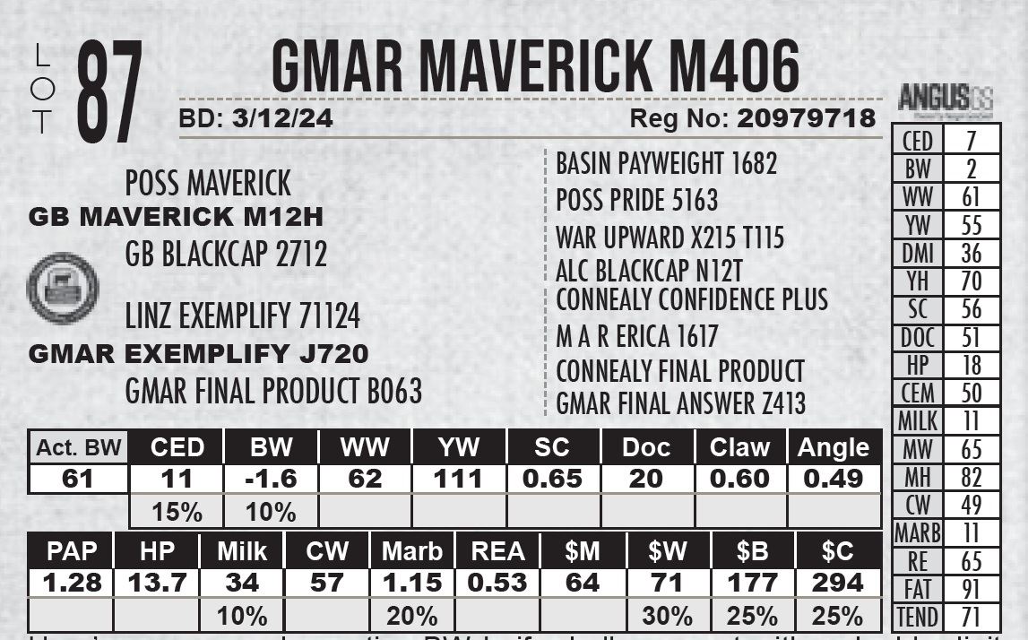 Here’s a very good negative BW heifer bull prospect with a double digit