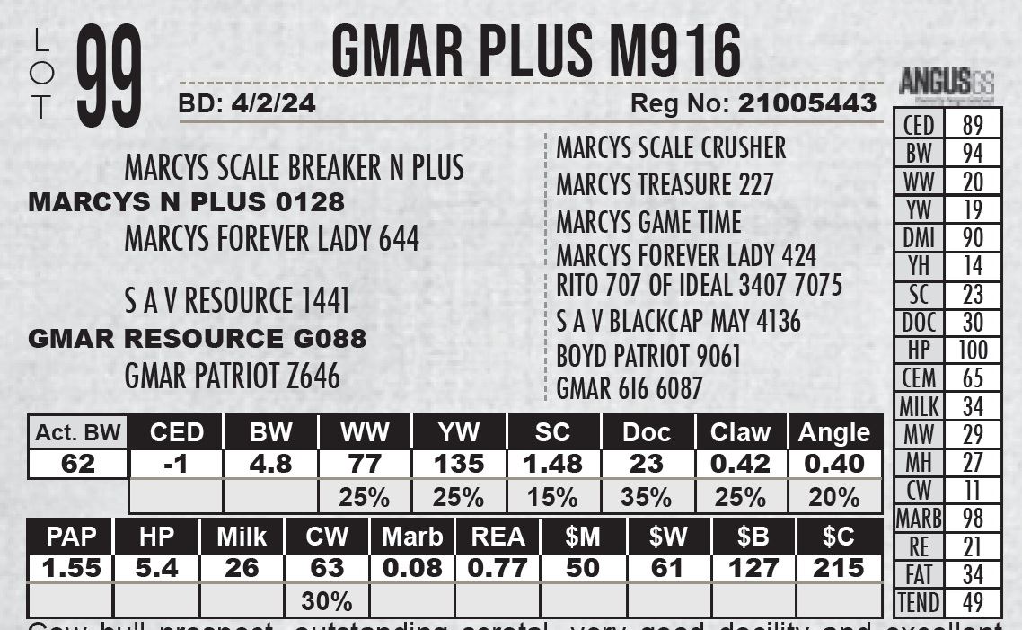 Cow bull prospect, outstanding scrotal, very good docility and excellent