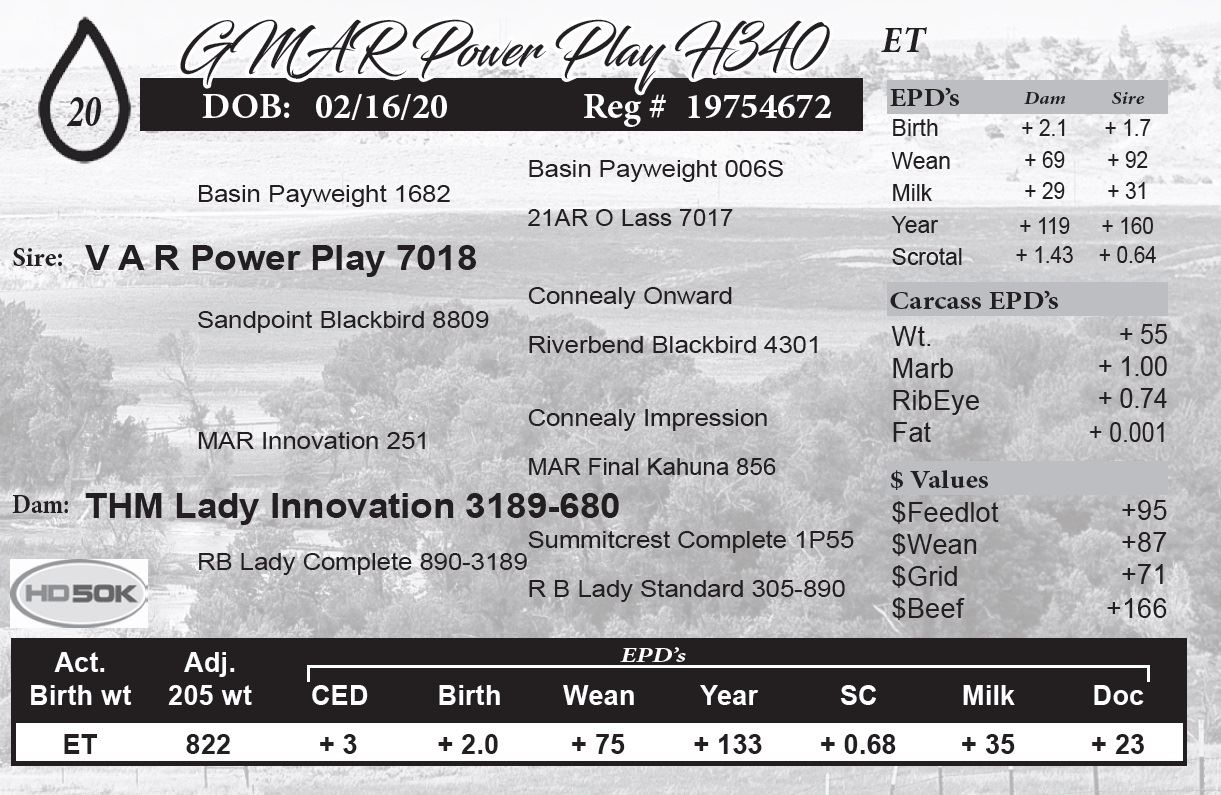 Flush Brother to Lots 1 & 19 also sells. Combines a production pedigree that combines genetics of 3 of the breed’s deepest bodied, high capacity bulls in recent memory with Power Play, 1682 Payweight and MAR Innovation. Super high marbling genetics here that tie with Lot 1 as best in the sale.