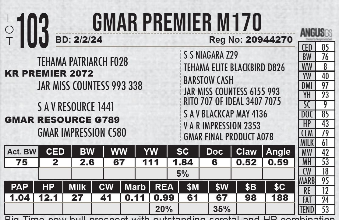 Big Time cow bull prospect with outstanding scrotal and HP combination