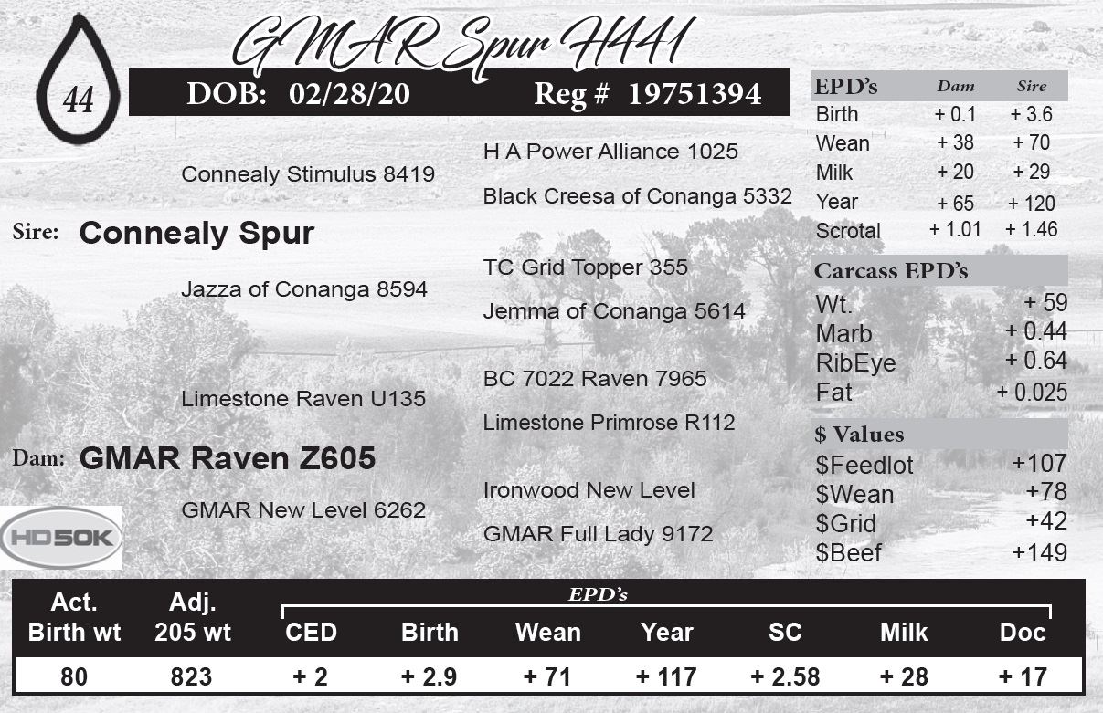 A touch more elevation, length and stretch with pounds across the scale for cow bull buyers needing grow power. Big scrotal EPD here at +2.60.