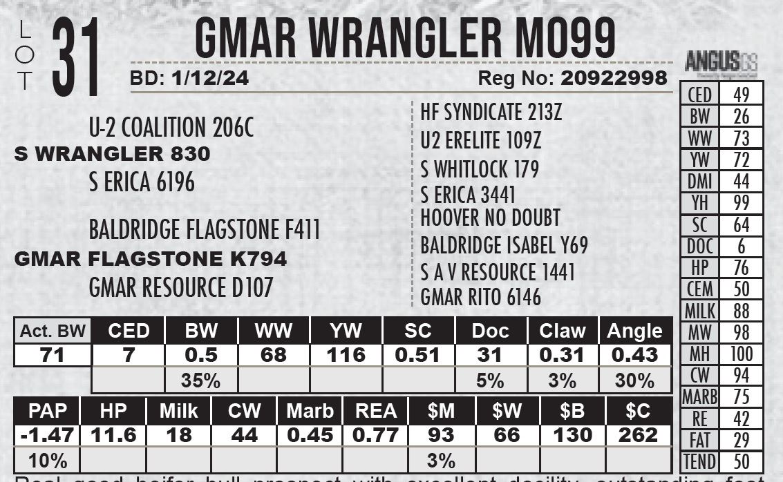 Real good heifer bull prospect with excellent docility, outstanding foot