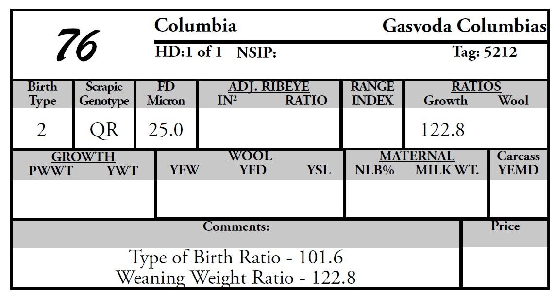 Type of Birth Ratio-101.6, Weaning Weight Ratio-122.8