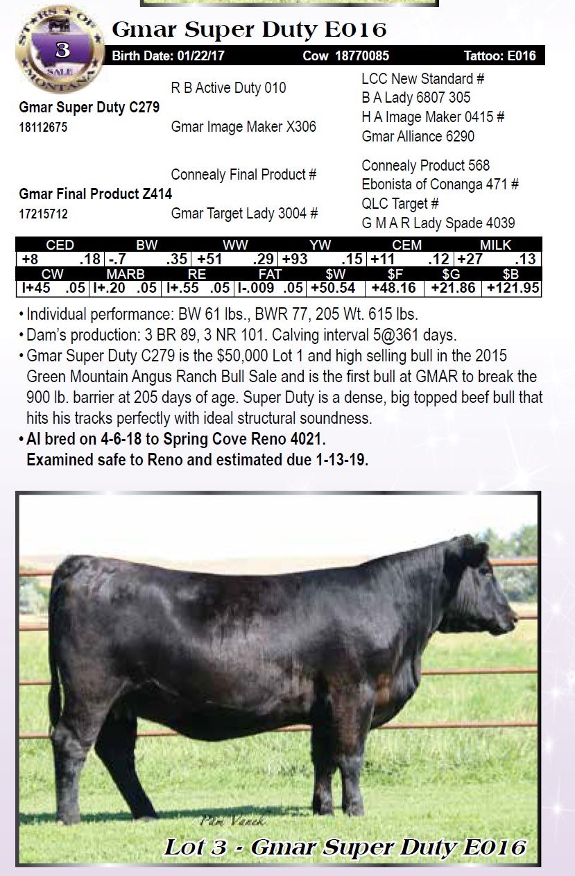 Green Mountain Angus Ranch Bull Sale and is the fi rst bull at GMAR to break the