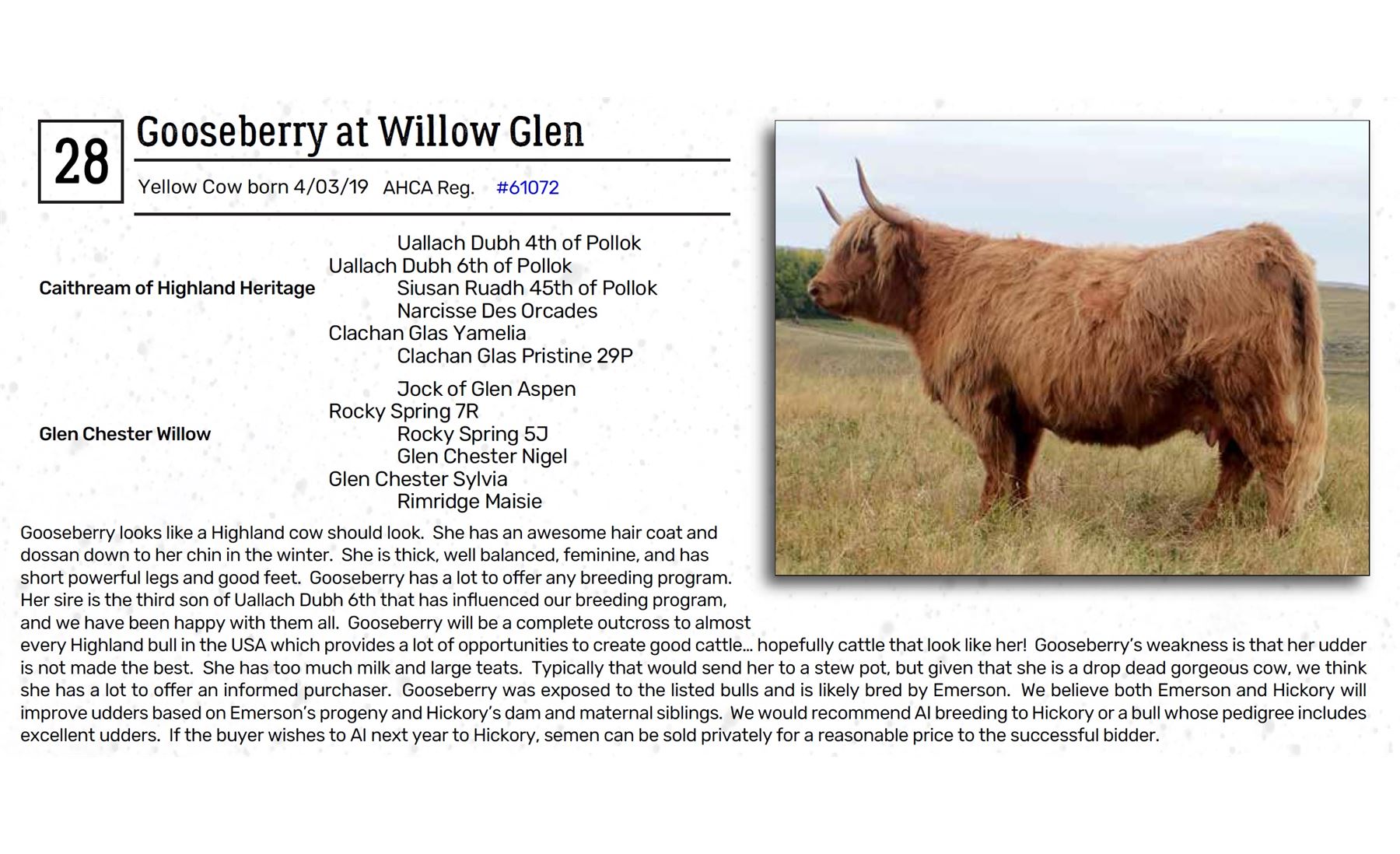 she has a lot to offer an informed purchaser. Gooseberry was exposed to the listed bulls and is likely bred by Emerson. We believe both Emerson and Hickory will