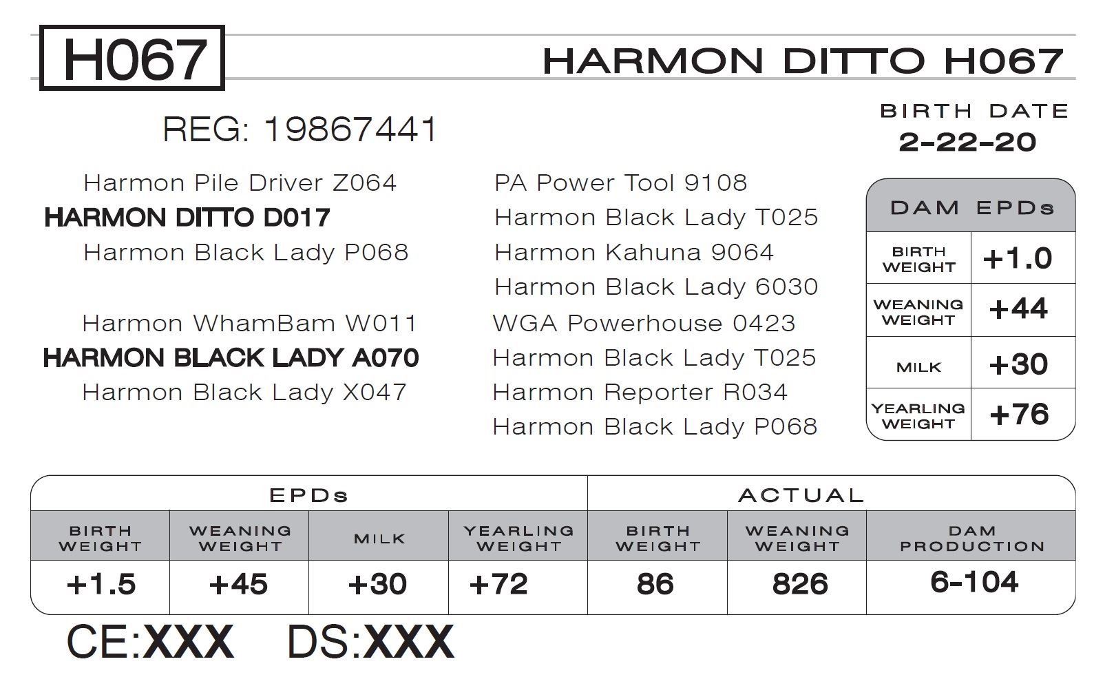 All cattle are to be settled for sale day, unless prior arrangements have been made. Please leave specific instructions in writing for transfer and shipping. Announcements made from the auction block take precedence over any printed material. The cattle sell under the suggested terms and conditions adopted by the American Angus Assoc.