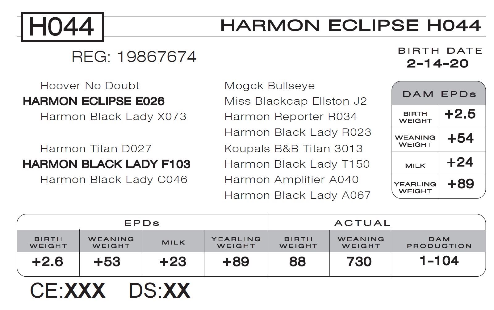 All cattle are to be settled for sale day, unless prior arrangements have been made. Please leave specific instructions in writing for transfer and shipping. Announcements made from the auction block take precedence over any printed material. The cattle sell under the suggested terms and conditions adopted by the American Angus Assoc.