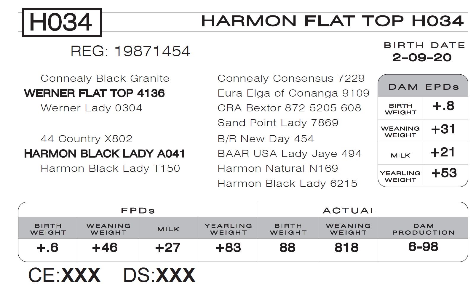 All cattle are to be settled for sale day, unless prior arrangements have been made. Please leave specific instructions in writing for transfer and shipping. Announcements made from the auction block take precedence over any printed material. The cattle sell under the suggested terms and conditions adopted by the American Angus Assoc.