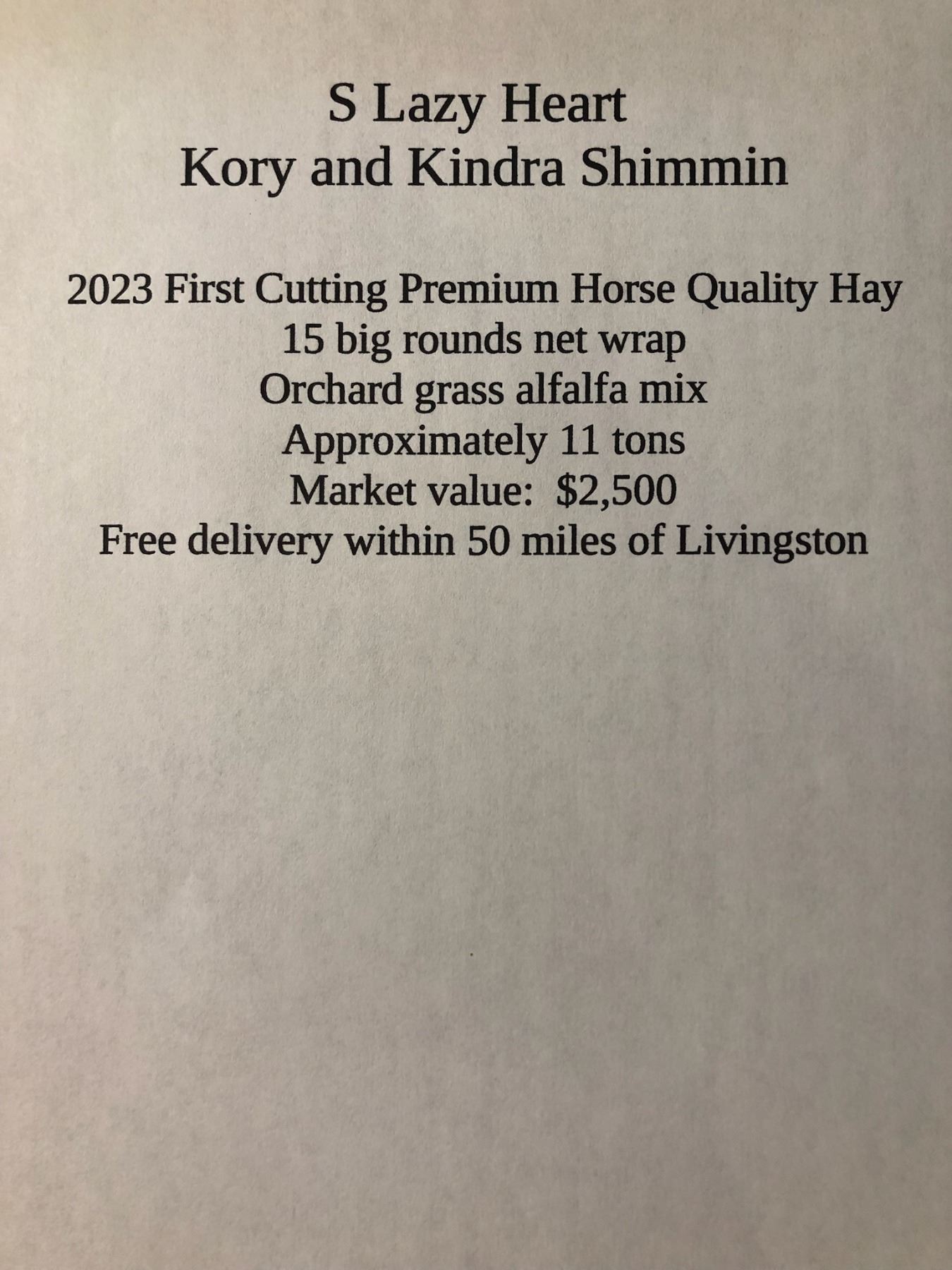 2023 First Cutting Premium Horse Quality Hay (Orchard Grass, Alfalfa Mix) 15 Big Round Bales, Net Wrapped (Approximately11 ton), Free Delivery within 50 miles of Livingston ~ $2500 Value