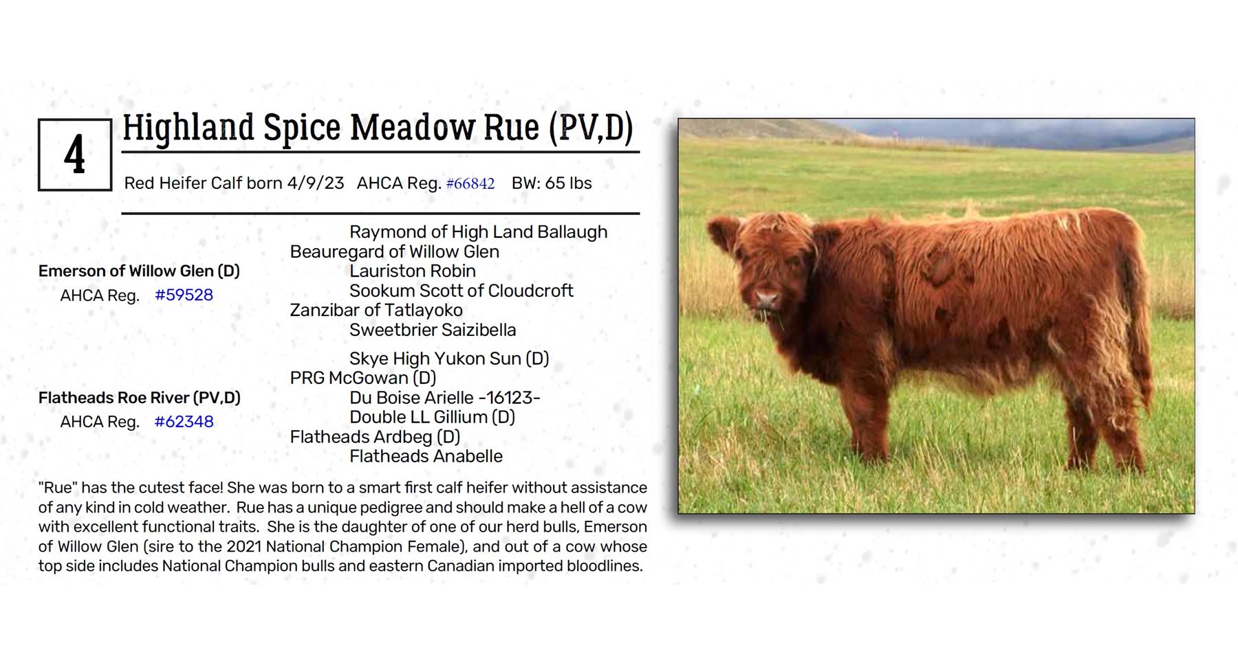 of any kind in cold weather. Rue has a unique pedigree and should make a hell of a cow