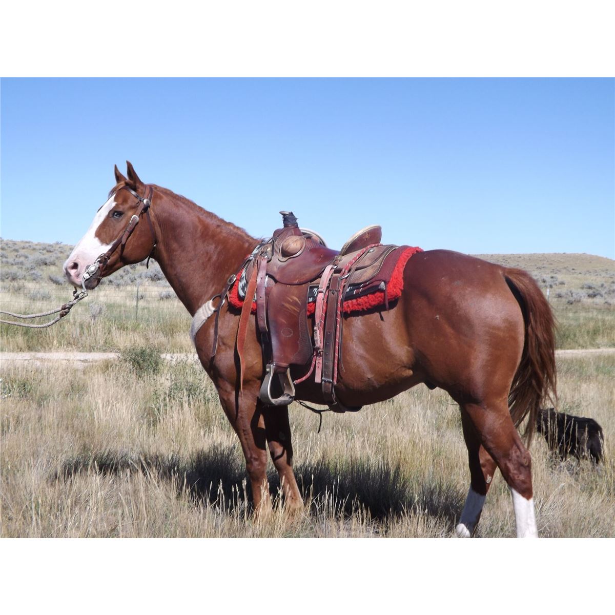 Here is a top notch using gelding. Lots of ranch work, real nice reing and stop, rides off of your foot cues. Easy to catch, shoe, load and haul. Used in mountainsand a good traveler. Roped outside drug calves at brandings. Nice and gentle to be around, anyone can ride that rides, maybe not small children horse.