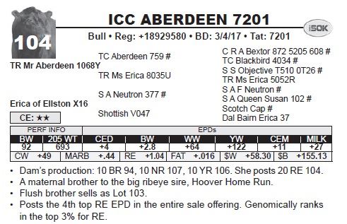 • Dam’s production: 10 BR 94, 10 NR 107, 10 YR 106. She posts 20 RE 104.