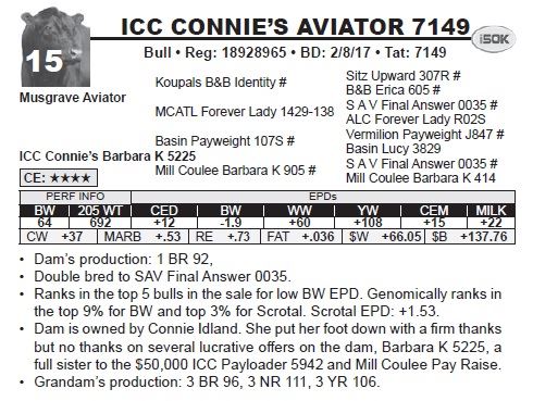 • Ranks in the top 5 bulls in the sale for low BW EPD. Genomically ranks in