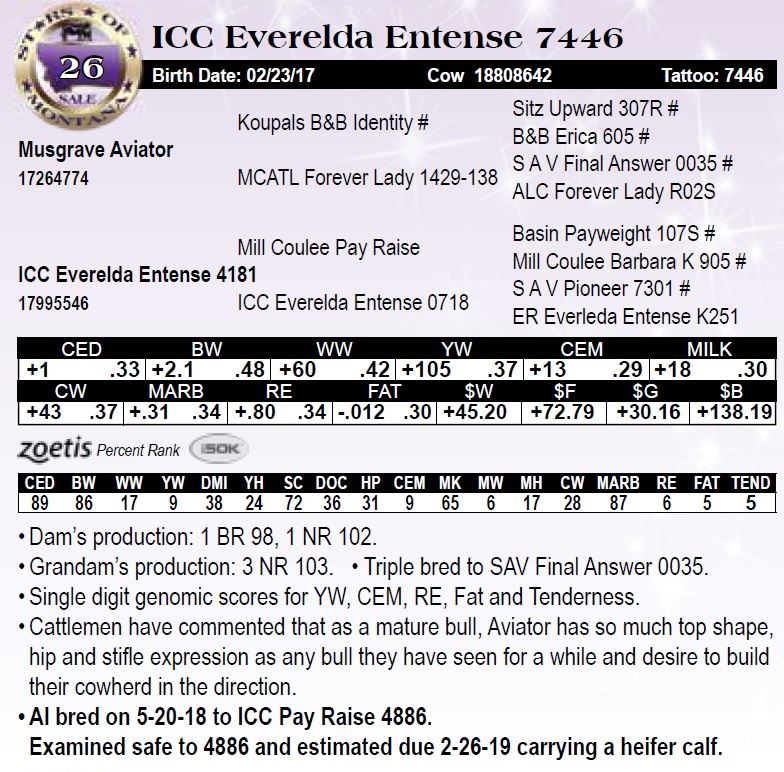 • Grandam’s production: 3 NR 103. • Triple bred to SAV Final Answer 0035.