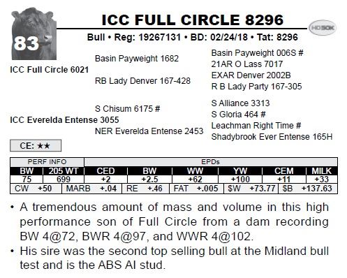 Free Delivery within a 400 mile radius to central points or to the feedlot of your choice. All bulls will be fertility tested and ICC will begin delivery the first week or April 2019.