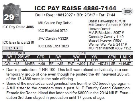 • Dam’s production: 1 NR 100. This bull was ratioed individually in a contemporary