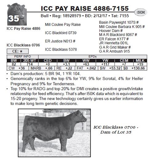 • Dam’s production: 5 BR 94, 1 YR 104.
