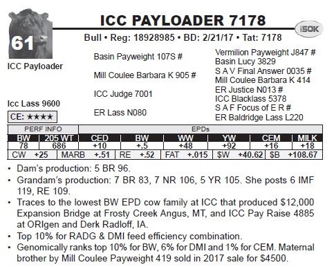 • Traces to the lowest BW EPD cow family at ICC that produced $12,000