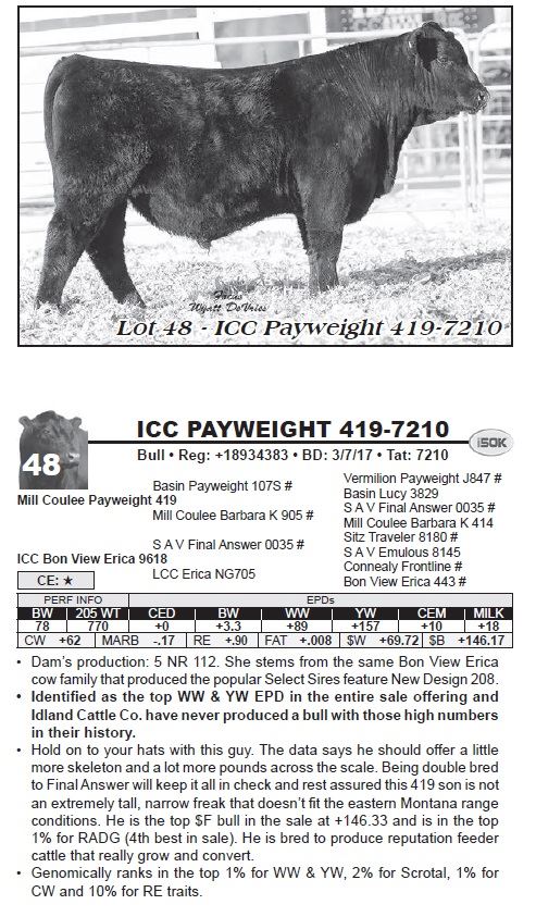 conditions. He is the top $F bull in the sale at +146.33 and is in the top