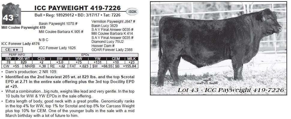 plus top 10% for CEM. One of the younger bulls in the sale with a mid
