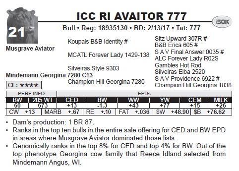 • Ranks in the top ten bulls in the entire sale offering for CED and BW EPD