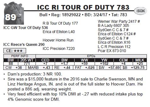 • Sire was a $15,000 feature in the 2016 sale to Charlie Swenson, MN and