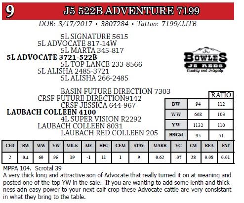 A very thick long and attractive son of Advocate that really turned it on at weaning and