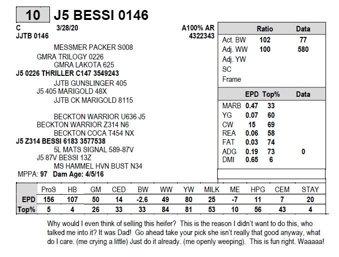 Why would I even think of selling this heifer? This is the reason I didn’t want to do this, who talked me into it? It was Dad! Go ahead take your pick she isn’t really that good anyway, what do I care. (me crying a little) Just do it already. (me openly weeping). This is fun right. Waaaaa!