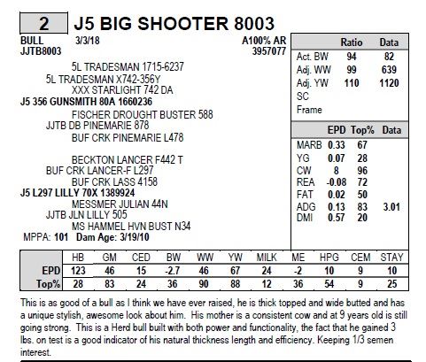 This is as good of a bull as I think we have ever raised, he is thick topped and wide butted and has a unique stylish, awesome look about him. His mother is a consistent cow and at 9 years old is still going strong. This is a Herd bull built with both power and functionality, the fact that he gained 3 lbs. on test is a good indicator of his natural thickness length and efficiency. Keeping 1/3 semen interest.
